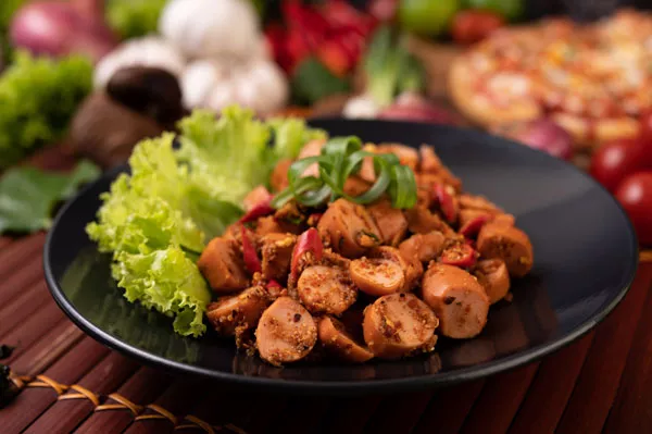 Le rougail saucisse est un incontournable plat emblématique de l’île de La Réunion, composé de saucisses fumées accompagnées d'une sauce tomate épicée et parfumée, selon une recette traditionnelle authentique. Complétez votre repas en choisissant un ou plusieurs carrys savoureux tels que le célèbre carry poulet ou d’autres spécialités locales selon vos préférences.